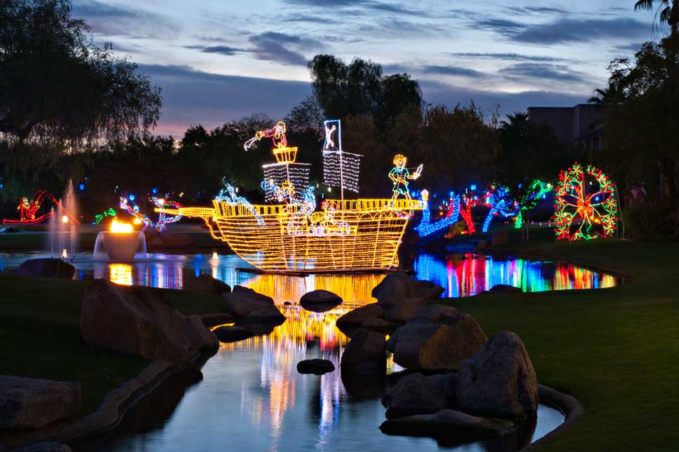 This AAA Five Diamond resort transforms into a winter wonderland during its annual festival, November 19, 2015 – January 3, 2016, glistening with a four-story musical tree, the Desert Ice Rink, Princess Express Train, Lagoon Lights, three new holiday characters – and of course – jolly ol’ St. Nick.