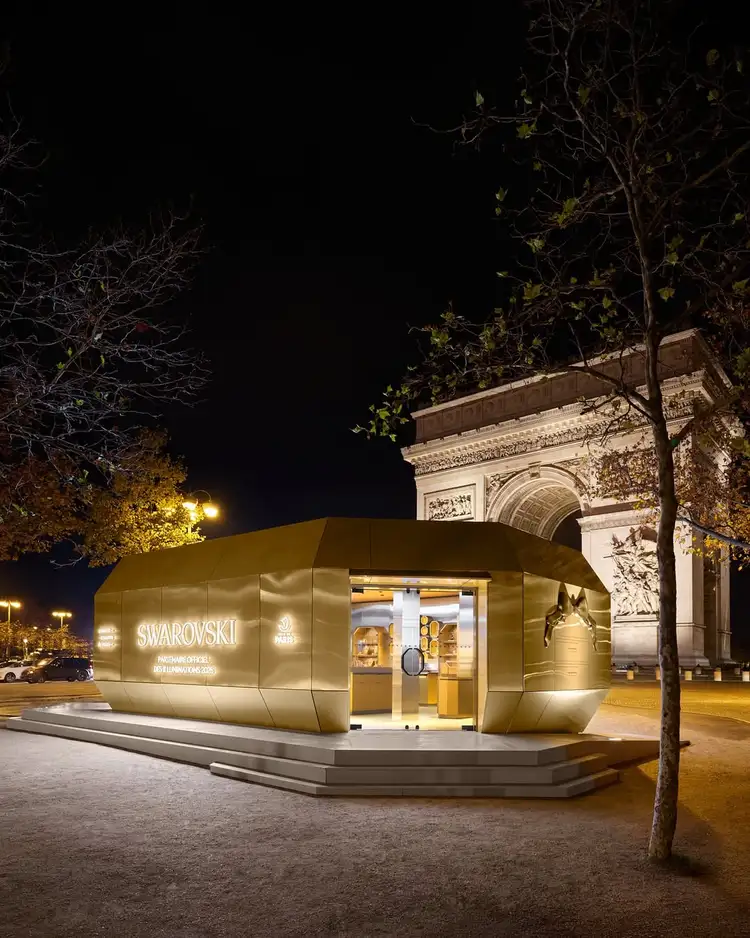 For Swarovski, the collaboration is both a creative statement and a nod to the brand’s longstanding connection to Paris. Daniel Swarovski supplied crystals to the city’s couture designers in the early 20th century, and that legacy now shines across more than 400 illuminated trees and hundreds of Swarovski-branded banners along the Champs-Élysées.