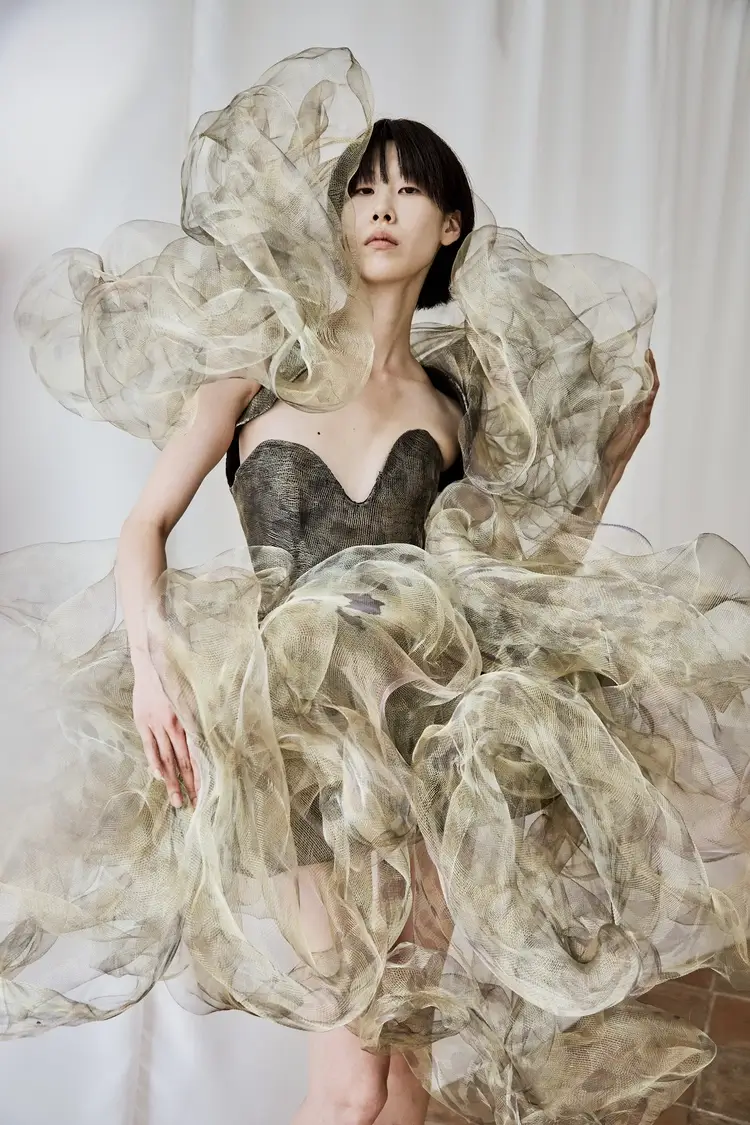 Van Herpen’s ability to alchemize the ethereal is perhaps most evident in her love for fine art and classical ballet. The Dutch fashion designer dipped her toe into the world of art and movement at an early age, garnering a deep understanding of energetic principles and fine-tuning an immense curiosity with herself and those around her. This transformative era in her life could be interpreted as Van Herpen’s catalyst, where she began to quietly finesse her creative eye and see the world with more presence, potency, and poise.