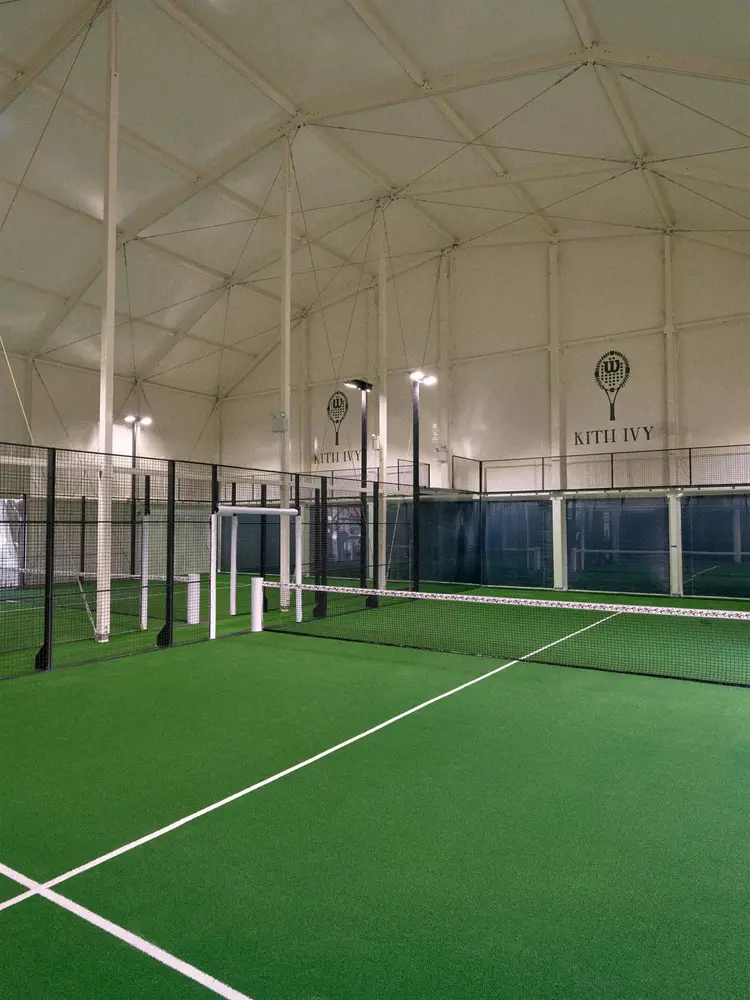 On the rooftop, Kith and Wilson created three enclosed padel courts, designed for year-round play and paired with outdoor dining spaces. To mark the launch, Kith released a range of Ivy-branded apparel, footwear, and equipment, including limited-edition Kith x Wilson padel rackets available online and in-store.