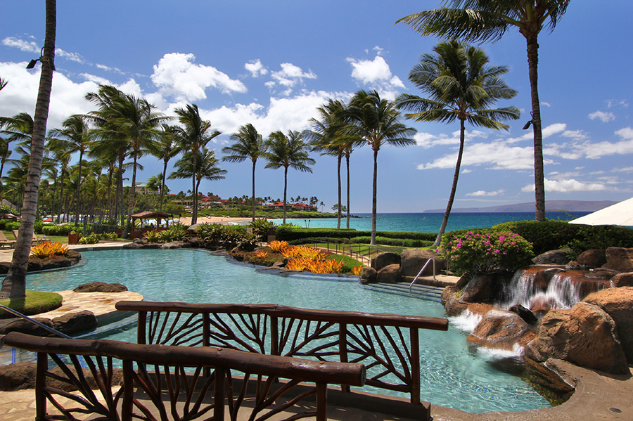 A tropical oasis of waterfalls and blooming gardens along quiet, tiki-lit pathways leads to award-winning Wailea Beach and the Wailea Beach Walk – a picturesque pathway that meanders along the coastline, providing guests easy access to the spas and restaurants at the Grand Wailea, Andaz, Four Seasons and Fairmont Kea Lani.