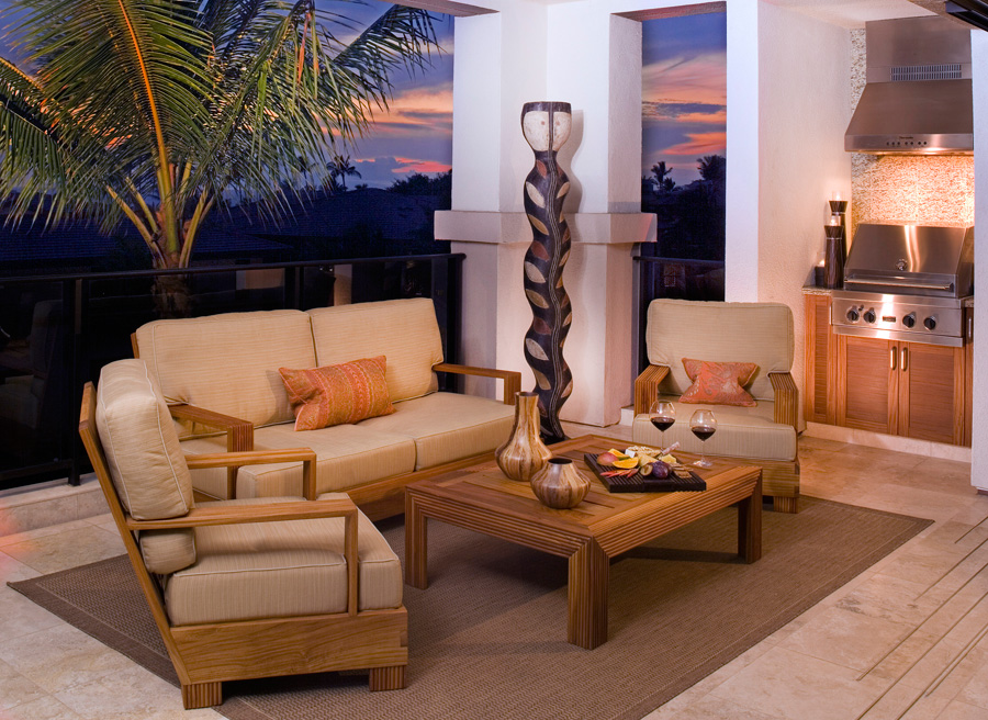 Each lanai features a Viking barbecue grill and individually furnished as an outdoor dining room, living room or tropical lounging area. Personal, enclosed laundry room features a full-sized washer and dryer, and iron and board. Climate controlled central air-conditioning with multi-zone controls and ceiling fans ensure guest comfort.