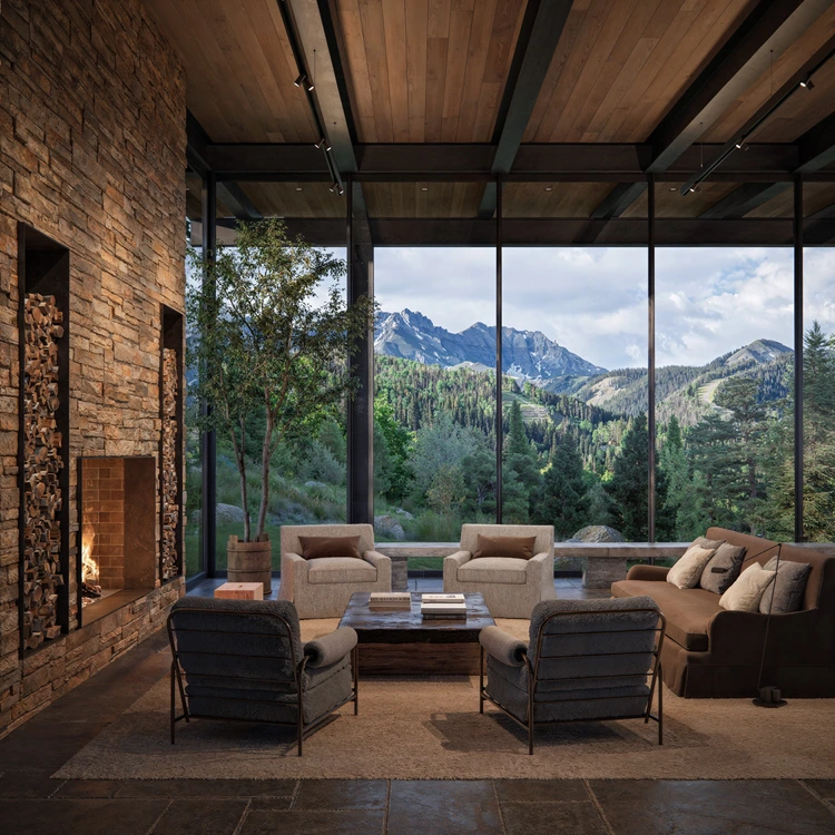 The project comprises three connected buildings designed by Olson Kundig, with interiors by Clements Design, using natural materials and architectural forms inspired by Telluride’s rugged peaks. Features prioritize natural light, indoor-outdoor flow, and panoramic mountain views.
